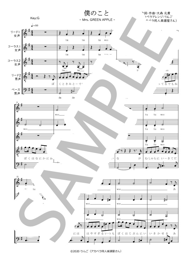 僕のこと Mrs Green Apple 5声 King Score アカペラ専門の楽譜販売サイト